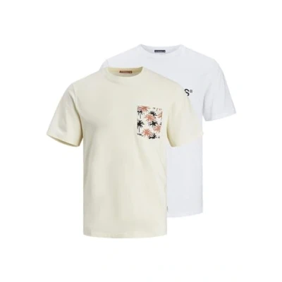 JACK & JONES Men's Joraruba Convo Pocket Tee Ss Mix 2pk Mp T Shirt, Buttercream/Pack: w. Bright White, L