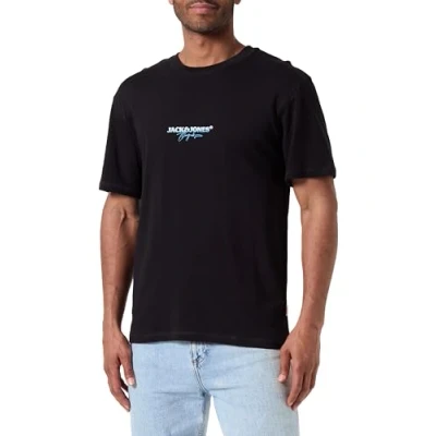 JACK & JONES Men's Joraruba Puff Branding Tee SS Crew Neck T Shirt, Black, M