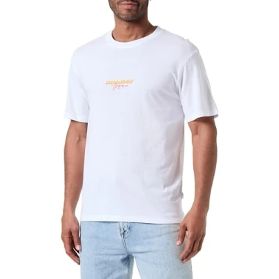 JACK & JONES Men's Joraruba Puff Branding Tee SS Crew Neck T Shirt, Bright White, M