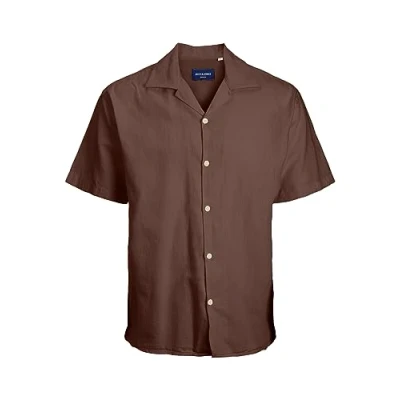 JACK & JONES Men's Jorbelize Linen Resort Shirt Ss Short Sleeved, Chestnut, M