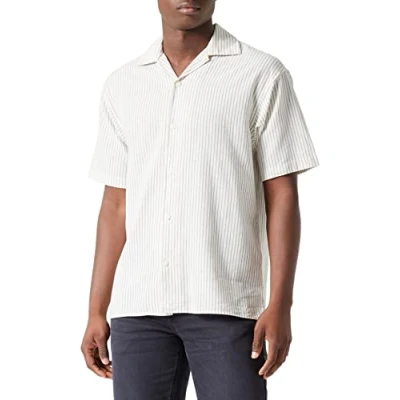 JACK & JONES Men's Jorbelize Linen Resort Shirt Ss Short Sleeved, Crockery/Stripes:, L