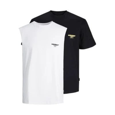 JACK & JONES Men's Jorbora Oversize Sl Mix 2pk Mp T Shirt and Tank top Set, Bright White/Pack:w. Black (Ss), L