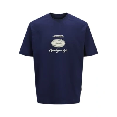 JACK & JONES Men's Jorboston Front Back Tee Ss Crew Neck, Ocean Cavern, M