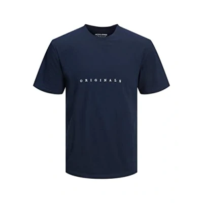 JACK&JONES Men's JORCOPENHAGEN TEE SS Crew Neck NOOS T Shirt, Navy Blazer/Fit:Relaxed/ORG Print/Cloud EMB, XS