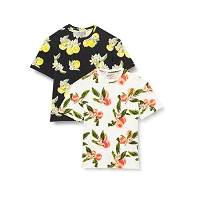 JACK & JONES Men's Jorflores AOP Tee Ss Crew Neck 2pk Mp T Shirt, Tap Shoe/Pack:tap Shoe(Lemon)+Cloud Dancer, M