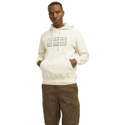 JACK & JONES Men's Jorfrederiksberg Box Sweat Hood Sn Sweatshirt, Antique White, S