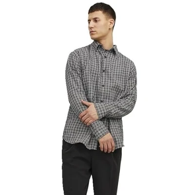 JACK & JONES Men's Jorgracia Parker Check Shirt Ls Sn Polo, Black, M