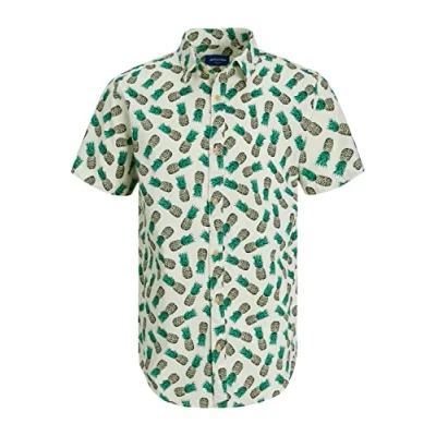JACK & JONES Men's Jorjames Palma Conv Shirt Ss Short Sleeved, Island Green, L