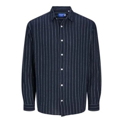 JACK & JONES Men's Jorjoshua Loose Weave Shirt Ls Casual, Sky Captain/Stripes: Stripes, L