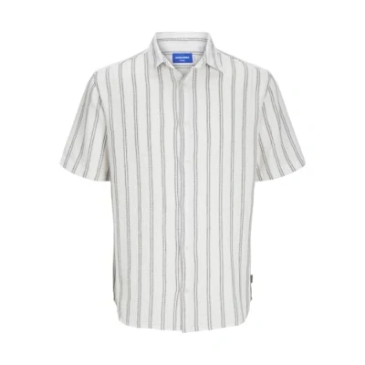 JACK & JONES Men's Jorjoshua Loose Weave Shirt Ss Casual, Cloud Dancer/Stripes:/Stripes, S