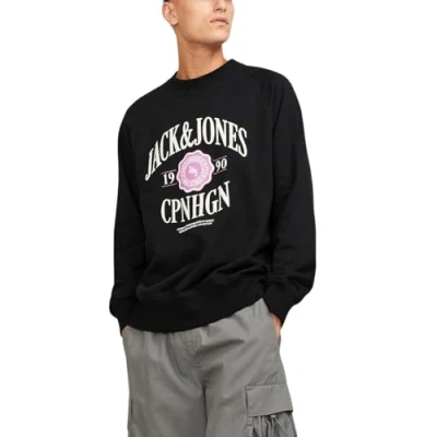 JACK & JONES Men's Jorlucca Branding Sweat Crew Neck Sweatshirt, Black, S