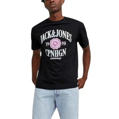 JACK & JONES Men's Jorlucca Graphic Tee Ss Crew Neck T Shirt, Black, S