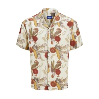 JACK & JONES Men's Jorluke Varenna AOP Shirt Ss, Antique White, XL