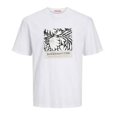 JACK & JONES Men's Jormarbella AOP Branding Tee SS Crew NEC T Shirt, Bright White, S