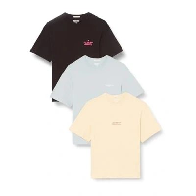 JACK & JONES Men's Jormykonos Back Tee Ss Crew Neck 3pk Mp T Shirt, Italian Straw/Pack:w. Graymist+Black, XXL