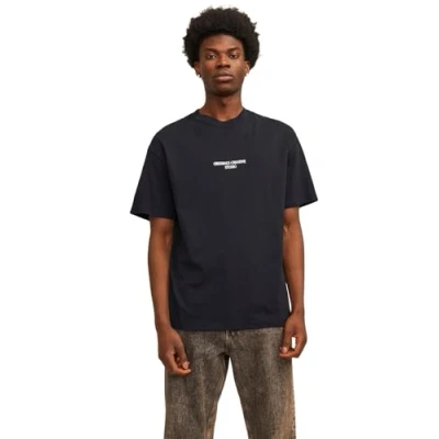 JACK & JONES Men's Jornoto Graphic Back Tee Ss Crew Neck Ln T Shirt, Black, S