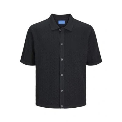 JACK & JONES Men's Jornoto Linen AOP Shirt Ss Ln Short Sleeved, Black, S