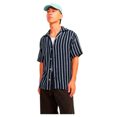 JACK & JONES Men's Jornoto Stripe Resort Shirt Ss Short Sleeved, Sky Captain, S