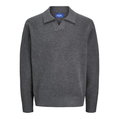 JACK & JONES Men's Jorollie Knit Ls Polo Jumper, Iron Gate, L