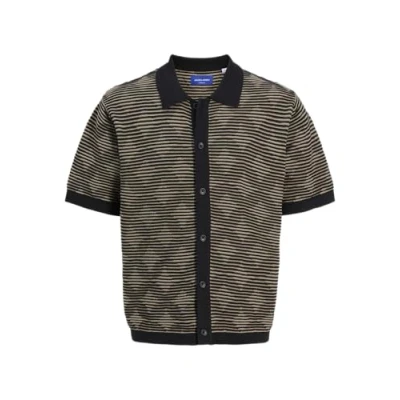 JACK & JONES Men's Jorparos Knit Easter Ss Crochet Polo, Black, XL