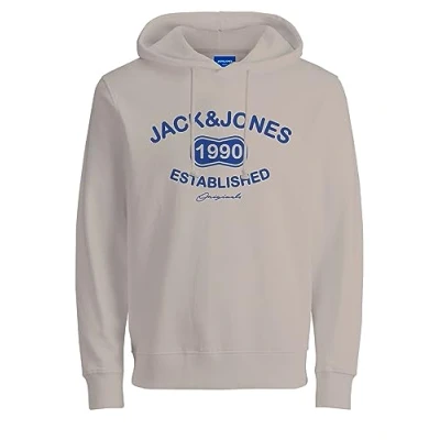 JACK & JONES Men's Jorrichard Inaw23 Sweat Hood Sweatshirt, White Melange, S