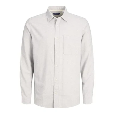 Jack & Jones Men's Jjeclassic Melange Shirt Ls Sn, Light Grey Mix, XL