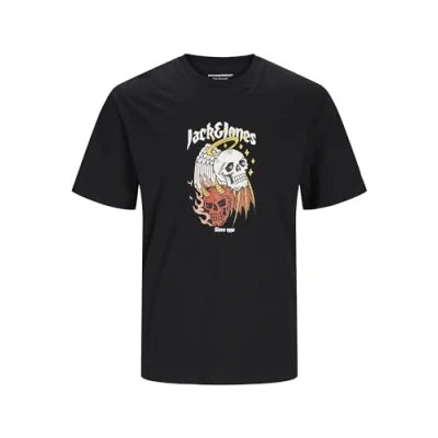 JACK & JONES Men's Jorseven Skull Tee Ss Crew Neck Sn T Shirt, Black, S