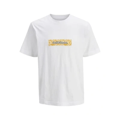 JACK & JONES Men's Jorsplit AOP Branding Tee Ss Crew Neck, Bright White, S
