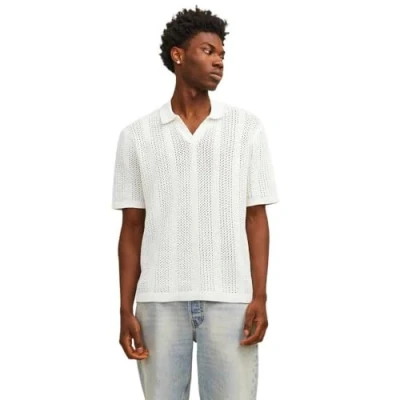 JACK & JONES Men's Jortaormina Knit Ss Polo Ln Shirt, Sea Salt, S