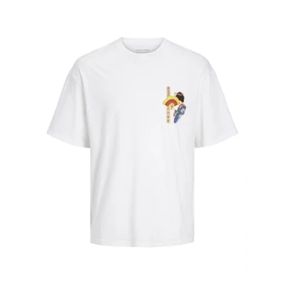JACK & JONES Men's Jortokyo Market Tee Ss Crew Neck Tg T Shirt, Bright White/Print: Black Script, S