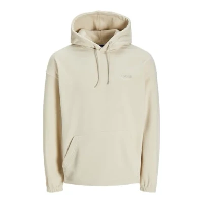 JACK & JONES Men's Jorvesterbro Sweat Fleece Hood Sweatshirt, Oatmeal/Print:with Back Print, S