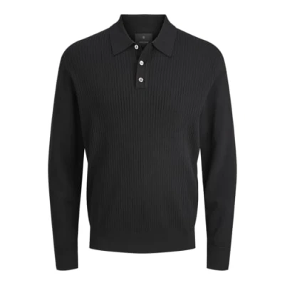 JACK & JONES Men's Jcoryker Knit LS Polo Jumper, Black, S