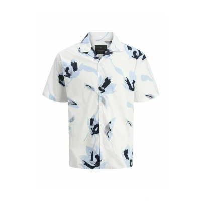 JACK & JONES Men's Jprblapalermo Print Resort S/S Shirt Sn, Chambray Blue, M