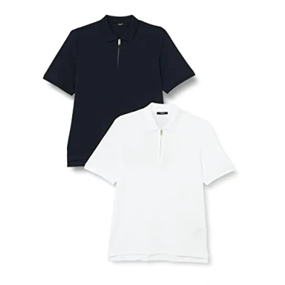 JACK & JONES Men's Jprblascott Zip Ss Polo Sn 2pk Mp Shirts, Bright White/Pack: White+Navy, L