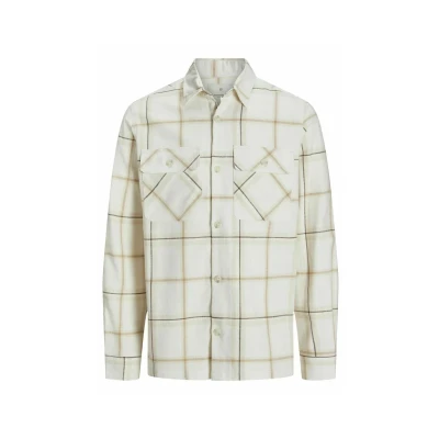 JACK & JONES Men's Jprblubrook Slub Check Shirt L/S Long Sleeve, Cloud Dancer/Fit: Comfort fit, S
