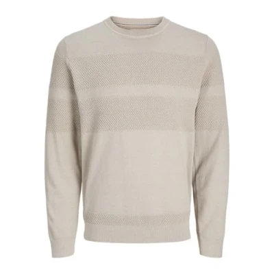 JACK & JONES Men's Jprblunoah Knit Crew Neck Bf Jumper, Feather Gray/Detail:Twist/Placement Structure, L