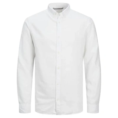 JACK & JONES Men's Jprccmaze Linen Shirt L/S Button Down Long Sleeve, Bright White/fit: SLIM fit, L