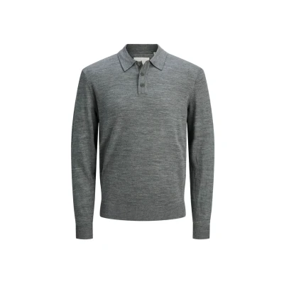 JACK & JONES Men's Jprccmerino Knit Polo Sn, Medium Grey Melange, L