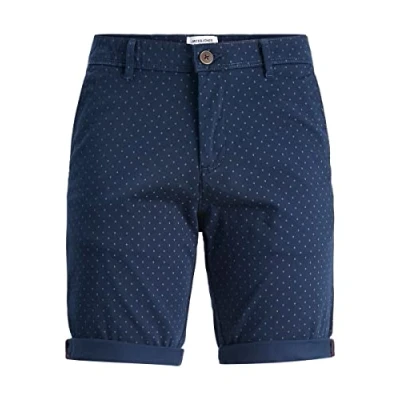 JACK & JONES Men's Jpstbowie Jjshort Sa Printed Sn Chino Shorts, Navy Blazer/Detail: AOP Antique White, XL