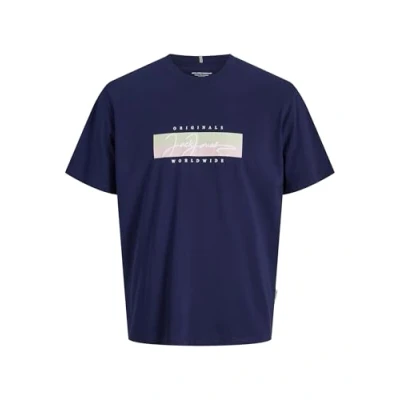 JACK & JONES Men's Male Logo T Shirt Jorfrederiksberg Box Script Tee Ss Cn Ln, Ocean Cavern, XS