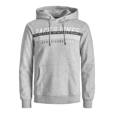 JACK & JONES Men's Pullover Sweatshirt Hoodie Casual Warm Logo Print Hooded Top Light Grey Melange S