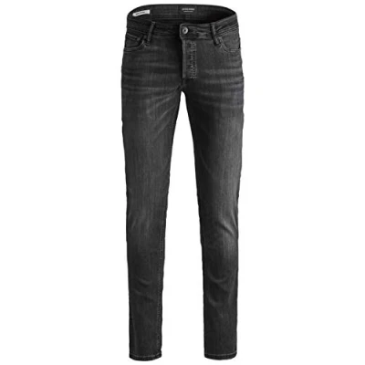 JACK & JONES Men's Slim Fit Jeans, Skinny, Tapered, JJI Glenn Original AM, Black / Grey, 32 W/34 L