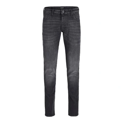 JACK & JONES Men's Black Jeans Slim Fit Stretch Trousers Button Fastening Cotton Denim Pants, Size 30W