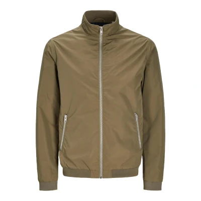 JACK & JONES Mens Bomber Jacket Light Weight High Neck Full Zip Coat Long Sleeve Jackets for Men, Green Colour, Size 2XL