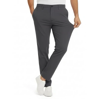 JACK & JONES Men's Chino Trousers Slim Fit Men Made of Recycled Polyester Classic Performance Pants with Stretch, Mid Rise, Turn Up Hem, Asphalt, 36 W/32 L