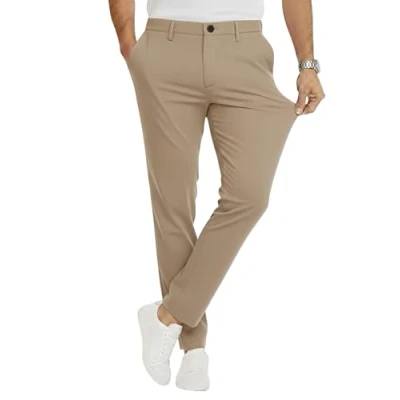JACK & JONES Men's Chino Trousers Slim Fit Men Made of Recycled Polyester Classic Performance Pants with Stretch, Mid Rise, Turn Up Hem, Crockery, 29 W/32 L