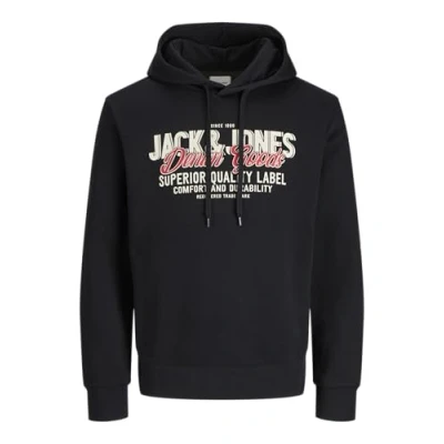 JACK & JONES Men's Hoodies Pullover Sweat Cool Logo Design Long Sleeve Sweatshirt for Men, Black Colour, UK Size XL