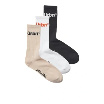 JACK & JONES Men's Jacurbn Tennis Socks 3 Pack Sn, Scarlet Ibis/Pack:Asphalt Moonbeam, One Size