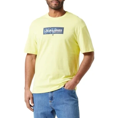 JACK & JONES Men's Jcoaop Print Tee SS Crew Neck T Shirt, Lemon Verbena, M