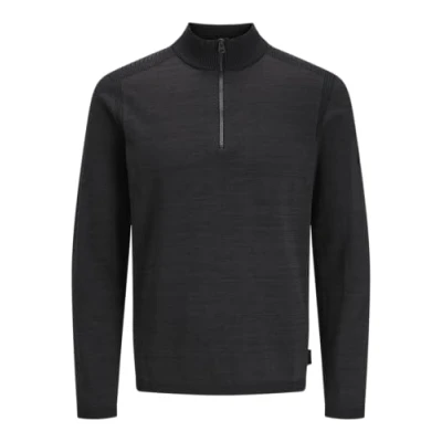 JACK & JONES Men's Jcomace Knit Half Zip SMU Jumper, Black/Detail: Melange, XL